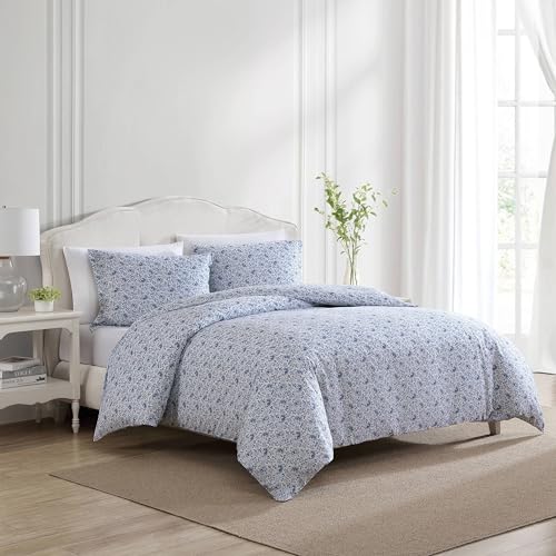 Laura Ashley – King Duvet Cover Set, Cotton Sateen Bedding with Matching Shams, Elegant & Silky-Smooth Home Decor (Lorelei Blue, King)