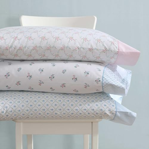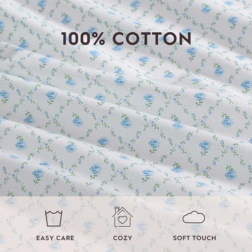 Laura Ashley – Sheet Set, Breathable Percale Cotton Bedding, 200 Thread Count, Deep Pocket, Chic Home Decor (Kate Blue, King)