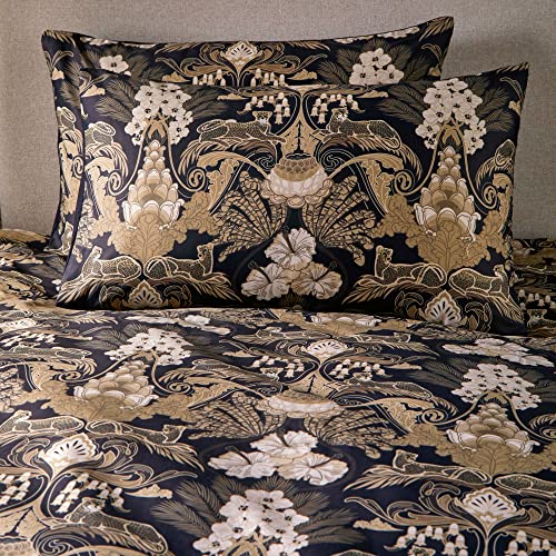 Laurence Llewelyn-Bowen – Black/Gold Jungle Duvet Cover – King Bedding Size (230 x 220cm) – Soft 100% Cotton – 2 Pillowcases – Luxury Bedding with Leopards – Bohemian/Damask Duvet Cover in Black