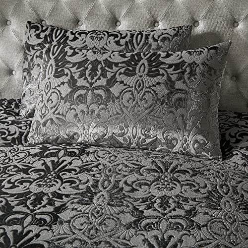 Laurence Llewelyn-Bowen – Slate Grey Embossed Damask Duvet Cover – King Bedding Size (230 x 220cm) – 2 Pillowcases – Grey Velvet Damask Bedding – Luxury Bedding Set – Jacquard Duvet Set in Grey