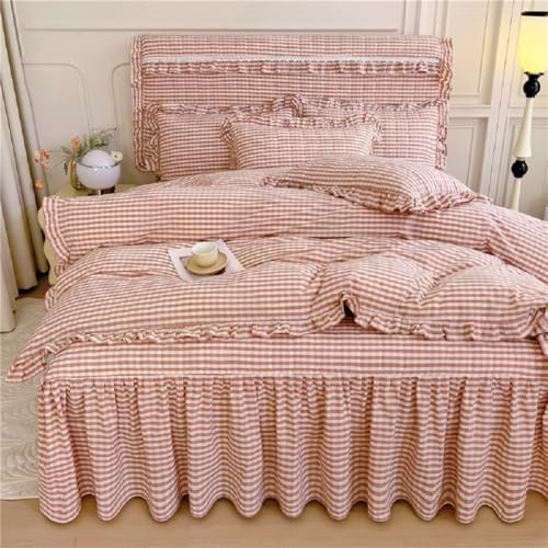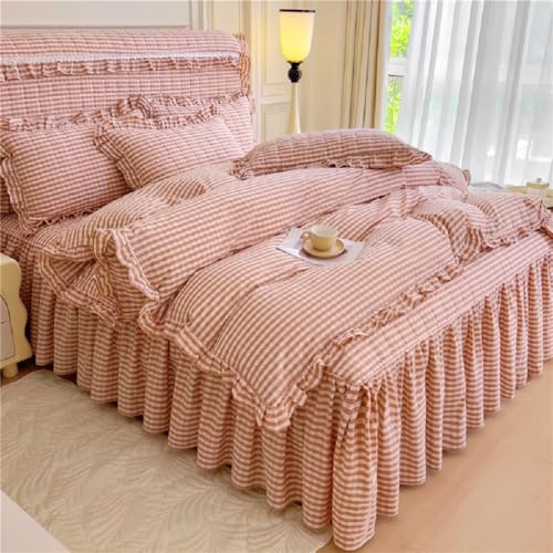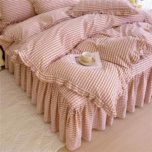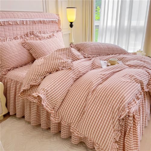 - Lightweight Soft King Comforter Set: Farmhouse ruffle pink gingham comforter set, 100% washed cotton outer cover with premium polyester microfiber inner fill, super soft, skin friendly, breathable and moisture-wicking, ensures a comfortable and cozy sleep. The neat and tight stitches in double-side of the plaid comforter largely improve its durability while prevent the filling from shifting and bunching, enjoy all seasons coziness and comfort with this checkered pattern comforter set.