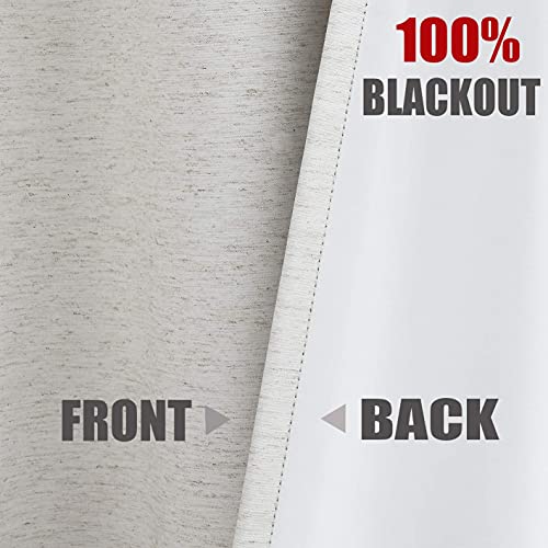 Linen Blackout Curtains Eyelet 54-inch Drop Natural Ivory Full Blackout Window Curtains for Girls Kids Bedroom Farmhouse Thermal Insulated Room Darkening Drapes with White Lining, 52" w x 2 Panels