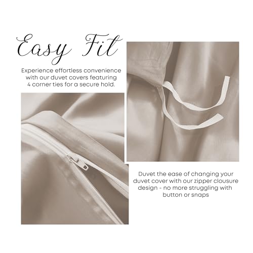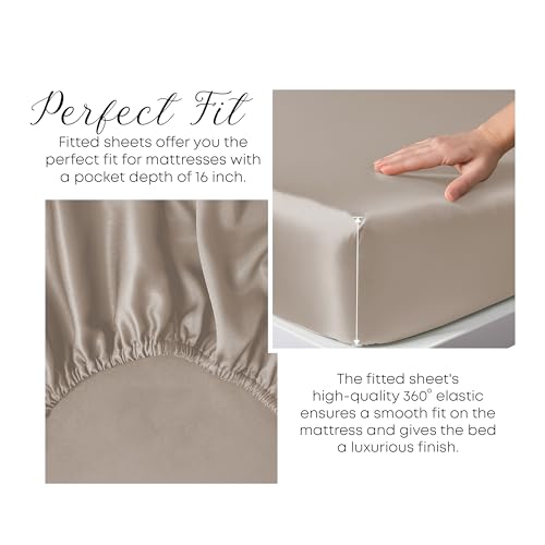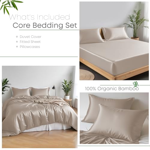 LINENWALAS 100% Organic Bamboo Complete Bedding Set for Super King Size Bed, Soft Cooling Bamboo Silk Bedding Set, 1 Duvet Cover, 1 Fitted Sheet, 2 Pillowcases (Super King, Taupe)