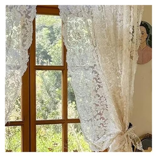 LIUHLFSR Living Room Curtains Lace Gauze Cream Retro Wave Edge Bedroom Bay Window Girls Embroidery Curtain Door Decoration(HOOK_W130CMXH50CM 1PC)