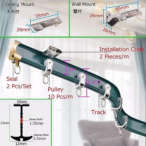 - ● Curved curtain rail monorail is made of thickened aluminum, 3.5mm thickened wheel wall, strongers load-bearing. Easy to bend, won't crack and break, can be used for a long time