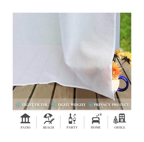 LIZHAYG Gazebo Curtains 2/4PCS Outdoor Sheer Curtains, Waterproof, Light, Semi-Sheer, Grommet Top For Courtyards, Terraces, Swimming Pools, Balconies(White,W54xH108(inch)-4PCS)