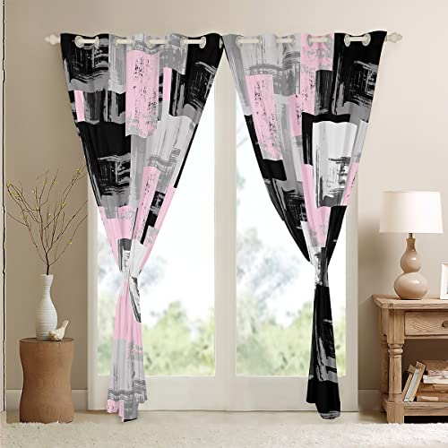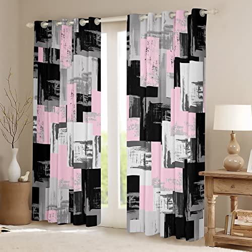 Loussiesd Pink Grey Black Curtains for Bedroom Living Room Kids Buffalo Check Blackout Curtains(30%-50%) Geometric Dreapes Modern Abstract Art Window Treatments W66*L72