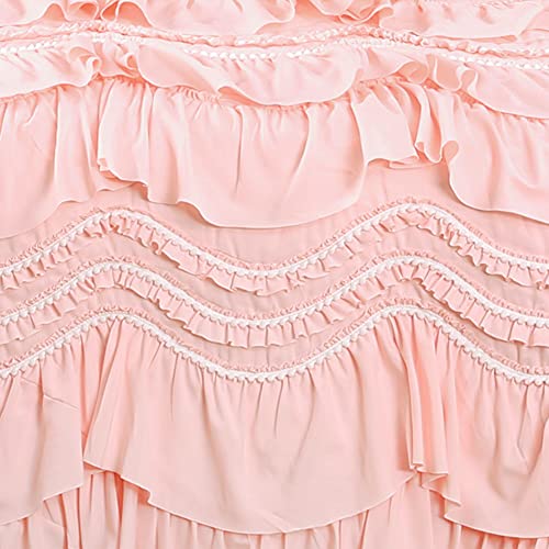 Lush Decor Ruffled Textured 3 Piece King Size Bedding Set, Polyester, Peachy Pink