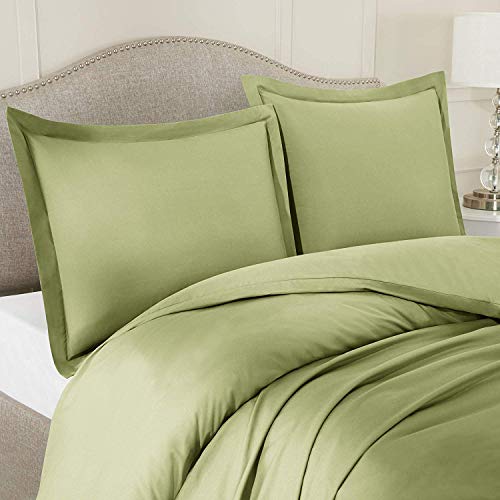 LUXURIOUS BEDDING Hotel 3pc Duvet Cover Set-1000 Thread Count Egyptian Cotton, Elegant Breathable and Durable, Premium Bedding Collection-Sage,Super King (102x88in.)