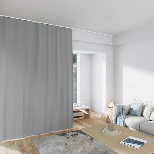 MaKefeile Room Divider Curtains – Total Blackout Privacy Panel – Thermal Insulated Noise Reduction – Bedroom/Window/Living Room – Ceiling Track – W 10ft × H 8 ft – Grey