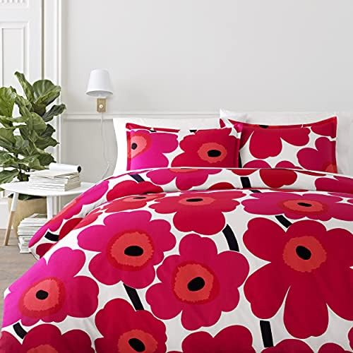 Marimekko – Queen Duvet Cover Set, Cotton Bedding with Matching Shams & Botton Closure, All Season Home Decor (Unikko Red, Queen)