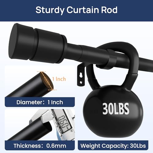 - Heavy-Duty Black Curtain Pole: Made of sturdy iron with a 1-inch diameter and 0.6mm thickness, this robust black curtain pole provides exceptional support, holding up to 30 pounds without bending or sagging. It is built to last and compatible with any curtain type