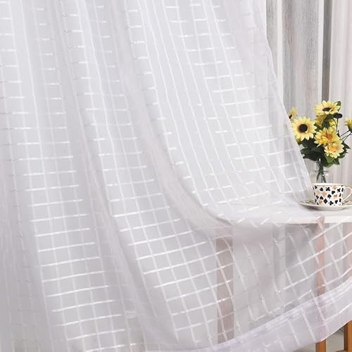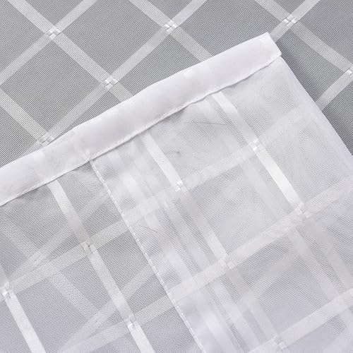 Megachest a pair of sheer IVY checkered pattern voile curtain with tie backs (White,W 56" x L 54" (2 Panels))