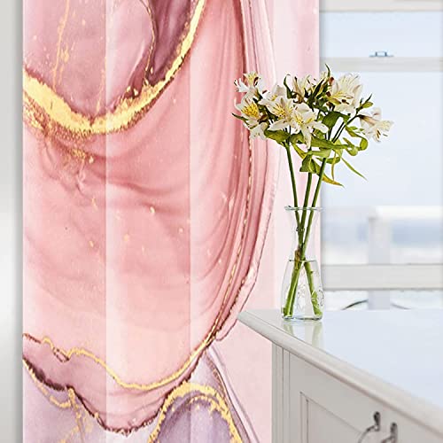 - MIRRORANG Pink Marble Blackout Curtains, Gold Ink Print Pattern Eyelet Blackout Room Darkening Window Drapes,Thermal Insulated Room Curtains for Living Room, 2 Panels Set(55x90inch)