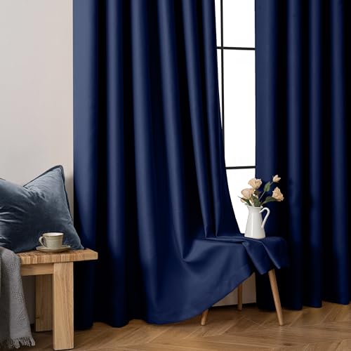 MIULEE Navy Blackout Curtains for Living Room 2 Panel Set, Premium Eyelet Curtains for Bedroom, Thermal Insulated Window Curtain Drapes, Black Out Curtain 90 Drop, Each Panel 46 x 90 Inches