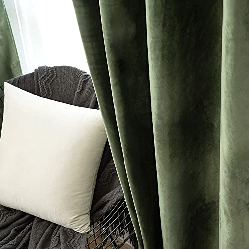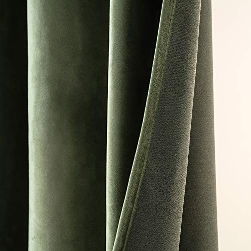 MIULEE Olive Green Velvet Curtains for Bedroom 2 Panel Set 90 Inch Drop Curtains, Soft Elegent Home Decor Velvet Curtain Living Room, Sun Blocking Room Darkening Thermal Eyelet Curtain 46×90 Inch