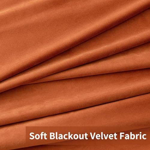 MIULEE Terracotta Velvet Curtains for Autumn Bedroom Decor 2 Panel Set 90 Inch Drop, Sun Blocking Room Darkening Rust Coloured Curtain 90×90, Soft Elegent Fall Decorations Curtains Living Room
