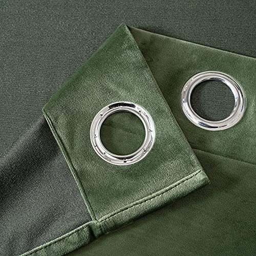 Miulee Velvet Blackout Curtains, Opaque with Eyelets, Thermal, Cold Protection for Bedroom & Living Room, Pack of 2, 140 x 185 cm (W x H), Matcha Green