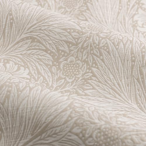 Morris&Co. Marigold Pencil Pleat Curtain Pair – Jacquard Lined Floral Heritage Drapes (Stone – 117x137cm)