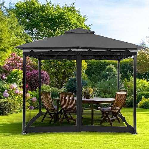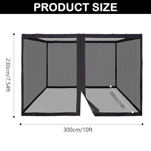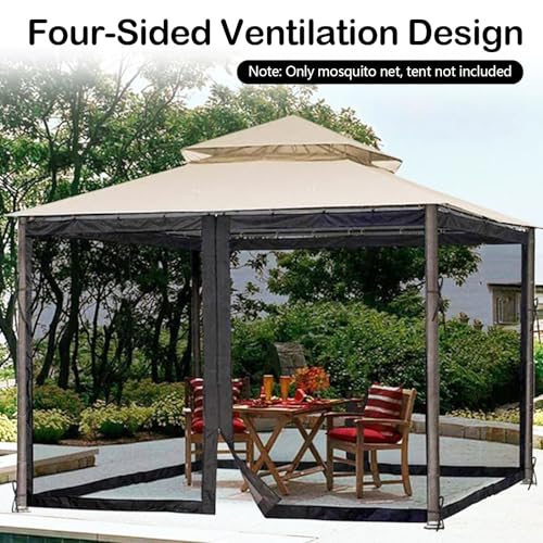 Mosquito Net for Gazebo, 3 x 3 m Mosquito Net Outdoor Waterproof Mosquito Net with Zippers Universal Gazebo Fly Screen Black Sidewalls Replacement Curtains for Garden Backyard