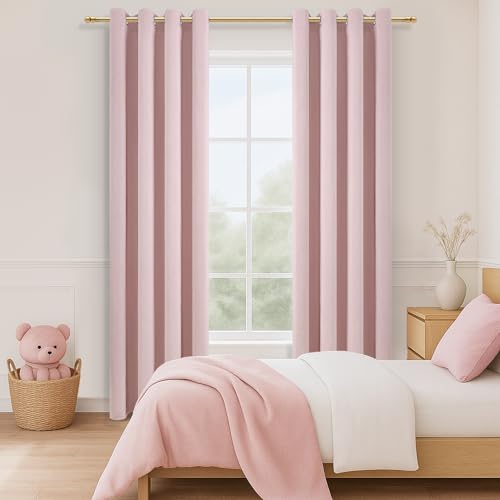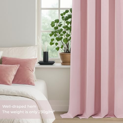 MRTREES Curtains with Eyelets, Opaque, Light Pink, Set of 2 for Children's Room, Girls, Opaque Curtains for Bedroom, 245 cm Long, 140 cm Wide, Blackout Curtain, Window, Living Room, Modern