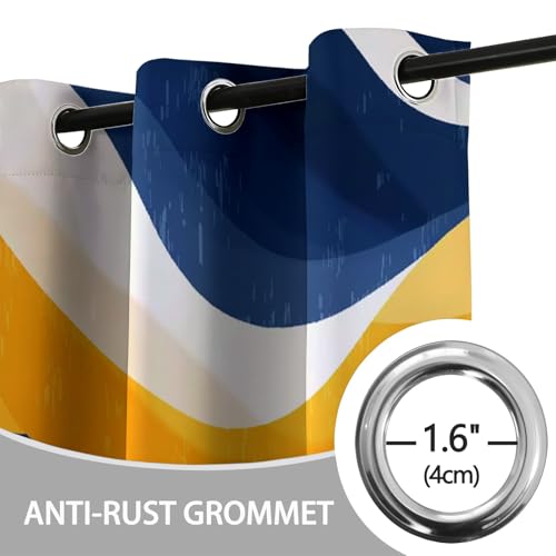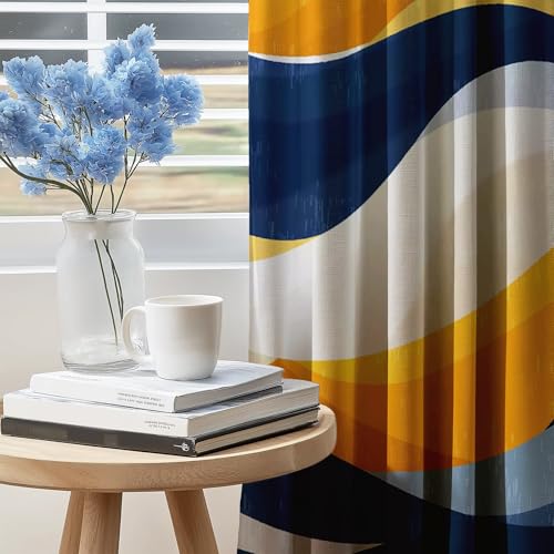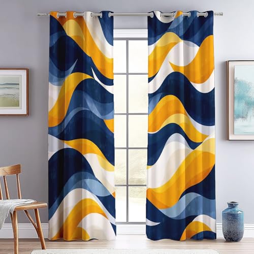 Navy Blue Orange Blackout Curtains, Abstract Waves Waves Print Pattern, Curtains for Living Room W 29.5" x L 65" (2 Panels), Thermal Eyelet Drapes Decorative Window Treatments