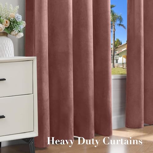 Nemia Blush Pink Velvet Curtains Thermal Insulated Blackout Curtain for Bedroom Window Living Room Darkening Luxury Vintage 96 Inches Long Heavy Drapes Panels Rod Pocket Set of 2
