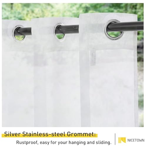 NICETOWN Sheer Outdoor Curtains for Patio Waterproof – 2 Panels Wide Grommet Indoor Voile Curtains for, Porch, Pergola, Cabana, 84 x 84 inch, Ivory
