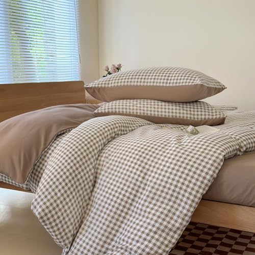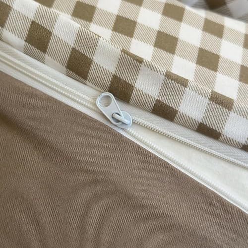 NSNLGSGC King Duvet Cover Set, Plaid Duvet Cover King Bed and 2 Pillowcases Bedding Set Easy Care 220 x 230 cm Tan Gingham