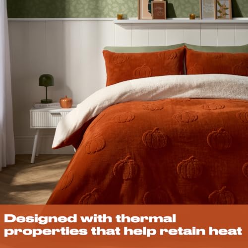 - Thermal Insulation for Ultimate Warmth: Designed with thermal properties that help retain heat, this teddy fleece king size duvet cover set keeps you comfortably warm during colder nights without overheating. Delight your loved ones with this cosy and festive Halloween bedding king size! featuring a tufted pumpkin design in warm burnt orange, it's the ultimate seasonal gift for anyone who loves comfort and spooky charm.