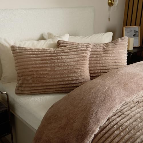 OHS Teddy Bear Bedding Superking, Ribbed Faux Fur Quilt Covers King Size Fluffy Teddy Bedding Covers Ultra Soft Fluffy Winter Bedding with Pillowcases – Mink