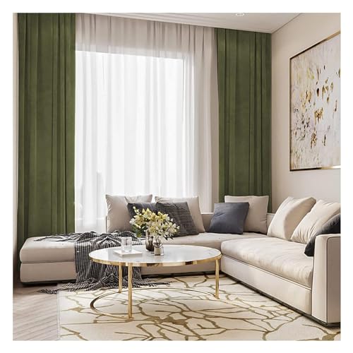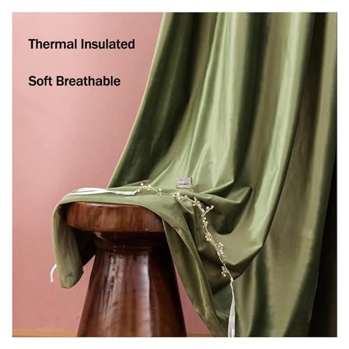 Olive Green Blackout Curtains Velvet Pencil Pleat Opaque Curtain Solid Color Bedroom Living Room Curtains 2 Panels, W140xL180cm,Green