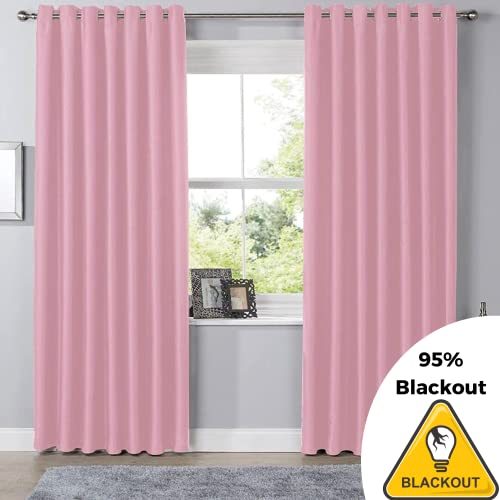 Olivia Rocco Blackout Eyelet Curtains Black Out Thermal Ring Top Curtain Pair Window Treatment Living Room Bedroom, 66" (Width) x 72" (Drop) Blush Pink