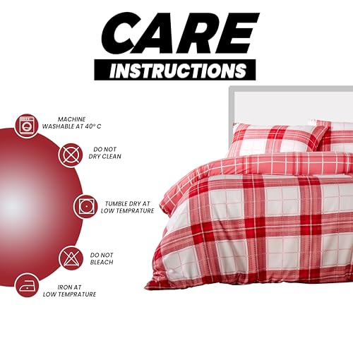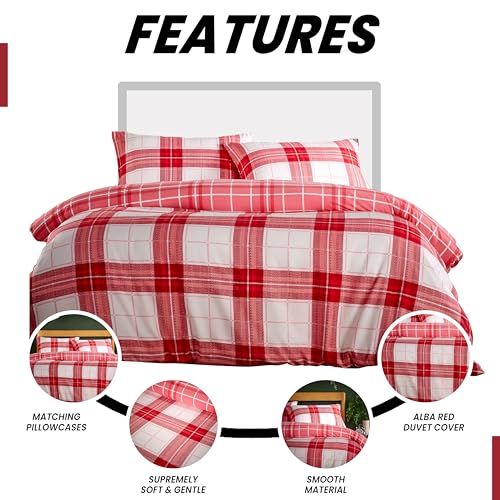 Olivia Rocco Super Soft Flannel Duvet Cover Set Quilt Bedding Covers with Pillowcases Luxurious Colourful Checked Printed Design Reversible Pattern for Comfort Sleep, Alba Red Double