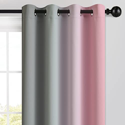 Yakamok Ombre Pink and Grey Curtains for Bedrooms, Gradient Room Darkening Drapes, Grommet Thermal Insulated Light Blocking Window Treatments, 52 x 84 Inch, 2 Panels