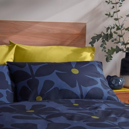 Orla Kiely Bedding – Wildflower Indigo 100% Cotton Duvet Cover Set 200 Thread Count (King Size Duvet Cover Set: 230cm x 220cm)