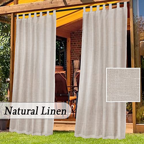 Outdoor Linen Sheer Curtains for Patio Waterproof Gazebo Curtains with UV Protection Semi Sheer Net Outdoor Curtains for Balcony Windows Set of 2 (52 * 84in)