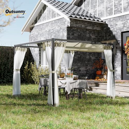 Outsunny 3 x 3 m Pergola with Retractable Canopy and Netting Sidewalls – Aluminium Frame Garden Shelter for Outdoor Relaxation