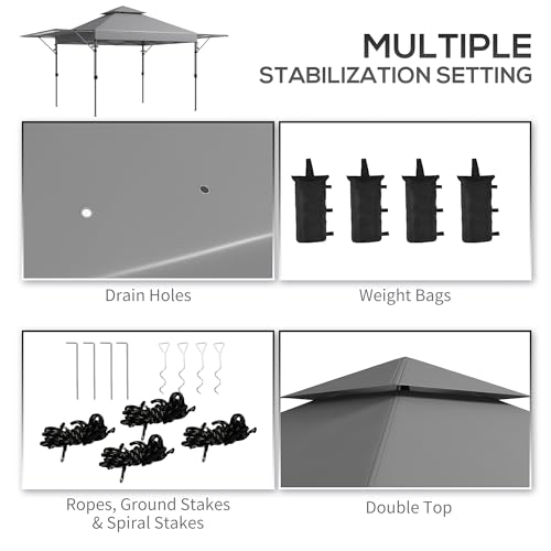 Outsunny 3 x 3(m) Pop Up Gazebo with Extend Dual Awnings, 1 Person Easy up Marquee Party Tent with 1-Button Push, Double Roof, Wheeled Bag, Sandbags, Height Adjustable Instant Shelter, Grey