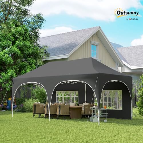 Outsunny 3 x 6m Pop-Up Gazebo with Sides, 6 Sandbags, Height Adjustable Peak Top Outdoor Garden Party Tent, Marquee Wedding Awning Canopy with Carry Bag, Dark Grey