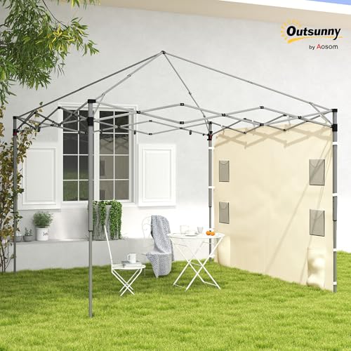 Outsunny Gazebo Side Panel, Canopy Sidewall Panel with 4 Mesh Bags and 2 Storage Pockets for 3 x 3 m Straight Leg Pop Up Gazebos, 1 Pack Sidewall Only, Beige