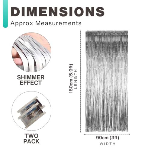 - đĒŠđđ⨠INCLUDED IN THIS PACKAGE – In each package, you will receive a pack of two silver foil door curtains. Each curtain measures 90 x 180cm (3 x 5.9ft) in size and is ideally suited for providing a sparkly decoration to any party or event!