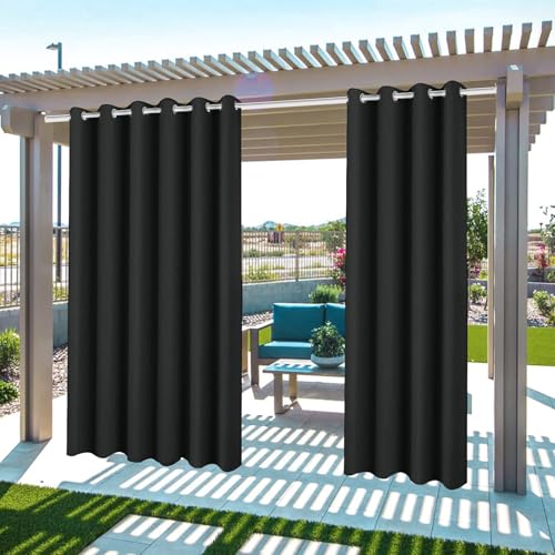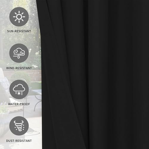 Panels Outdoor Curtains for Garden, 1pc Double Grommets(Top and Bottom), Gazebo Blackout, Thermal Insulated Privacy Outdoor Curtain, Eyelet Curtains for Pergola Porch Pool (Black, 264*183cm)