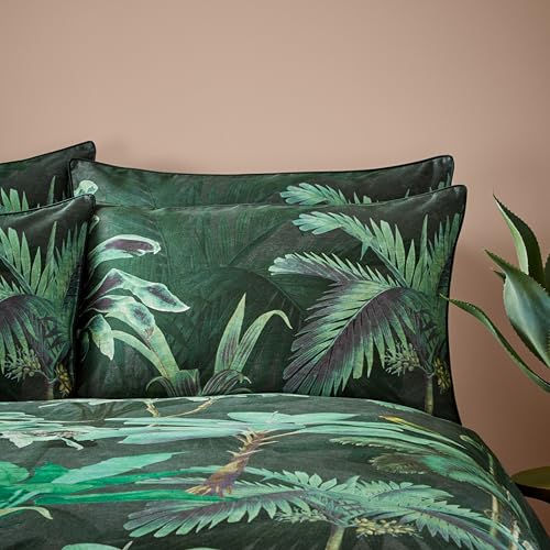 Paoletti Siona Duvet Cover Set – Wild Animals Luxe Cotton Bedding (Midnight Green – Super King)