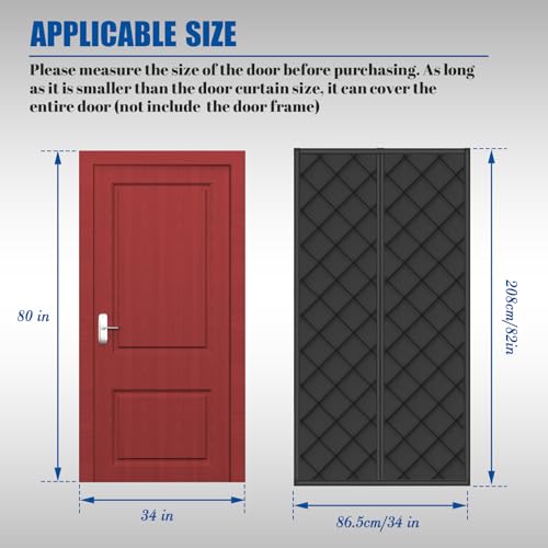 • Size Information: with dimensions of about 34 x 82 inches/ 86.5 x 208 cm, the magnetic thermal insulated door curtain applies to doors smaller than about 32 x 80 inches; Recommended measuring your door size in advance to ensure fit