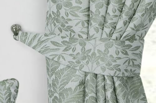 Pikk – Fully Lined Keswick – Floral Fully Lined Curtains – Pencil Pleat / 3" Tape Header – 100% Polyester (Sage, 90" x 90" / 229cm x 229cm)