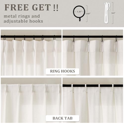 Pinch Pleat Extra Wide 72 x 108 Inch Linen Curtains for Living Room Divider Pleated Drapes with Hooks Rings Light Filter Semi Sheer Cream Ivory Patio Sliding Door Big Window Curtains 108 Inch Length