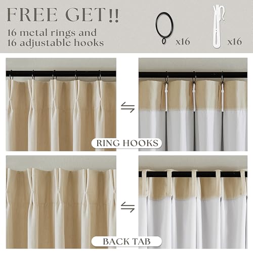 - Versatile Hanging Options: Method 1: Hanging with our hooks and rings to easy slide and creat a classic pleated effect. Method 2: Using back tab to hide the rod, easy to hang and showcase a casual look. Method 3: Using our adjustable hooks for track system. Method 4: Using clip rings(not included). Install according to your preference