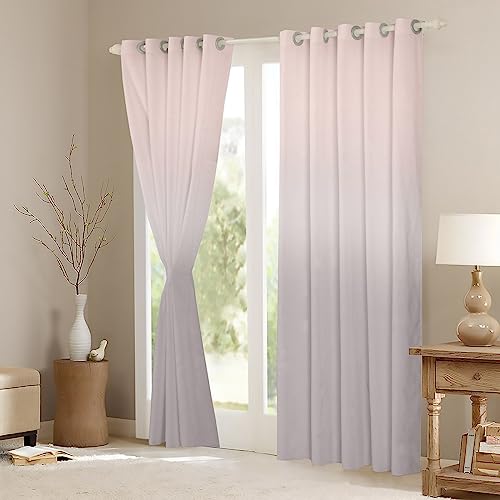 Pink Darkening Drapes Gradient Style Curtains for Bedroom Living Room For Kids Women Men Ombre Grey 30%-50% Blackout Curtains Geometric Window Treatments W66*L72