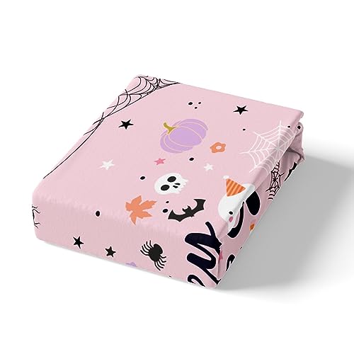 Pink Ghosts Duvet Cover Set Double Size, Halloween Theme Bedding Set 3pcs for Kids Girl Room Decor, Gothic Skull Spider Bat Pumpkin Comforter Cover Soft Polyester Quilt Cover with 2 Pillowcases